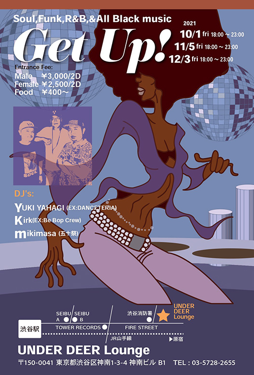 open 18:00 charge Male: 3,000円/2Drink付き Female: 2,500円/2Drink付き